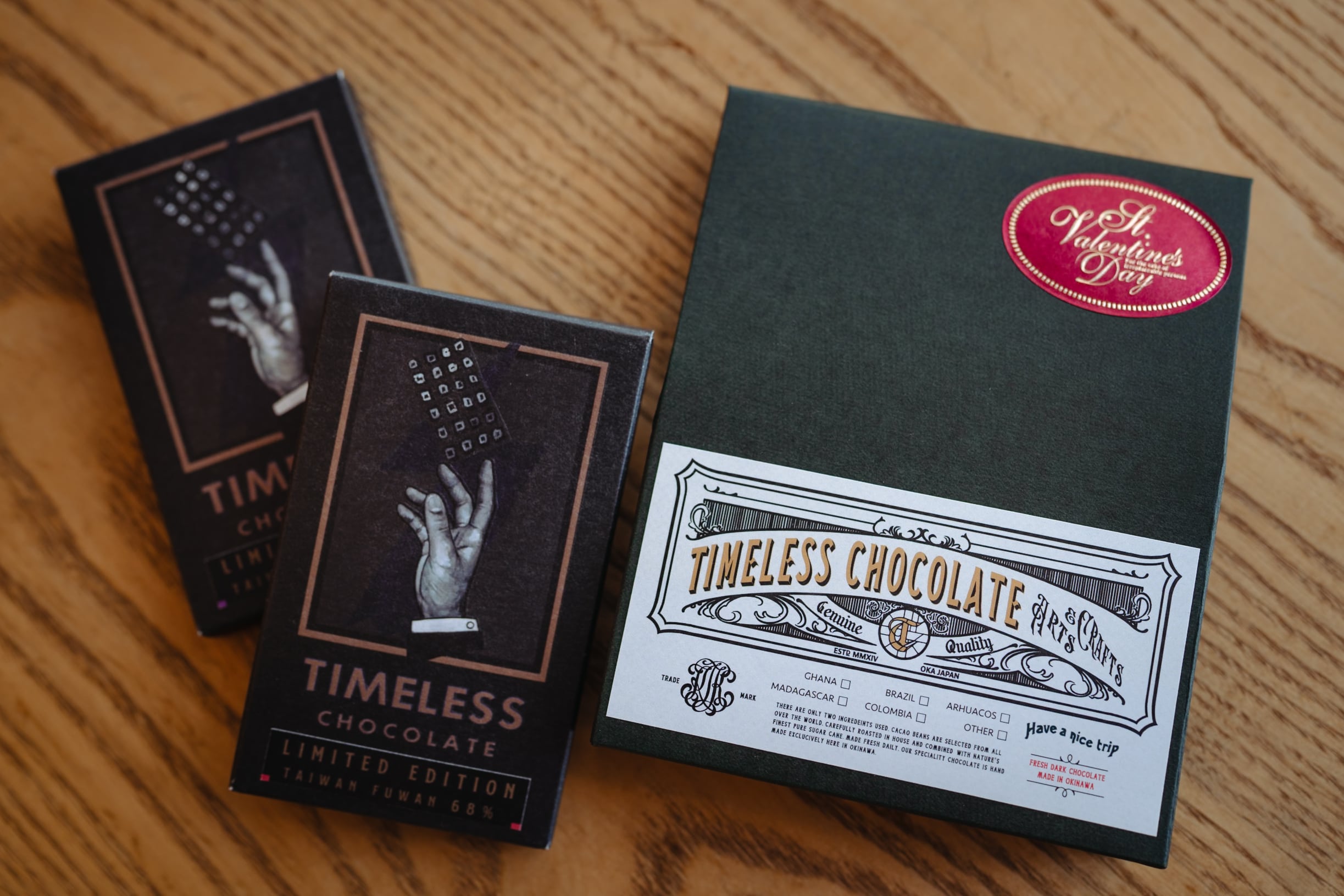 それぞれ1カケラを同時に口に入れ食べ進めることで、「甘さ/酸/果実感/ナッツ感/ビター感」TIMELESSが味の指標にする全てをバランスよく、かつ鮮明に感じ取ることができます。