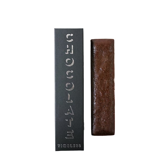 定番の純黒糖チョコレートテリーヌよりも素材の甘さは控えめに、しかしながら、中に敷き詰めた冬瓜漬けから感じられる濃縮された甘みが、より一層チョコレートテリーヌの一体感を出し、まとめ上げてくれます。口溶けだけではなく、潤いあふれる食感に舌鼓を打ってしまう、そんな魅力的な1本です。